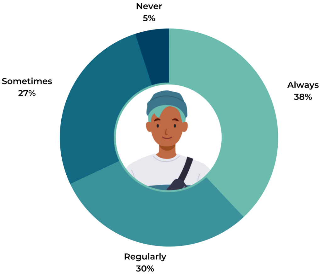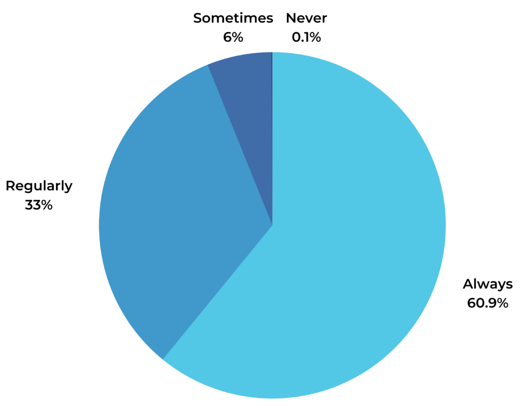 When there’s a search option available, 93% of consumers indicate they’ll use it at least sometimes. And 64% say they use this feature regularly or always.