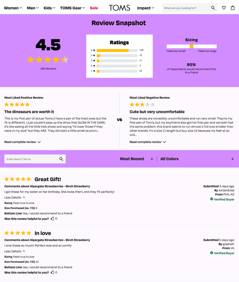 Make it a top priority to collect reviews across your entire product catalog. Then, prominently display this content on your product pages. Be sure to include features in your review display that make it easy for shoppers to sort, filter, and search for the content that’s most relevant to them – regardless of what device they’re using to browse and buy.