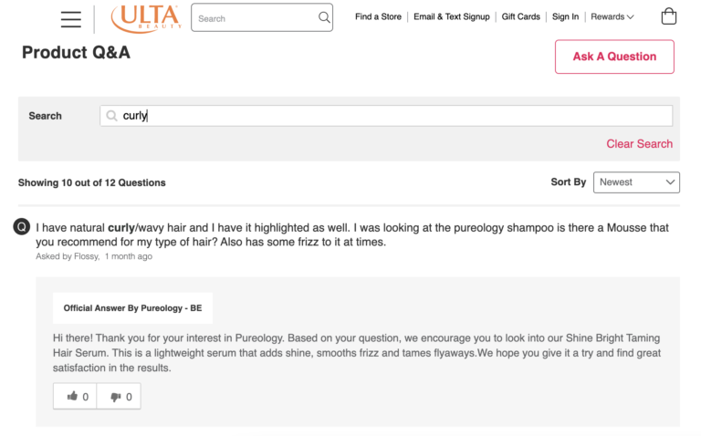 To bridge the gap, many brands and retailers have a questions and answers (Q&A) section on product pages that allow shoppers to read questions that have already been asked – and submit their own.