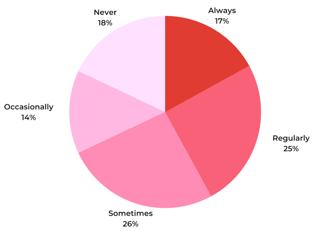 In addition, nearly a quarter (21%) of shoppers say they’re more open to buying a new (to them) product when shopping online than they would if they were shopping in a brick-and-mortar store. And over half (58%) say they’re as likely to try a new product online as they are in a store. This is interesting, as it proves that online grocery shoppers don’t necessarily need to see and touch a new product in person before committing to a purchase. We’ll dig into what gives them the confidence to try a new product later in this report.