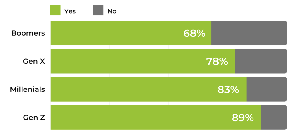But the majority (83%) of online grocery shoppers are also open to purchasing products they’ve never tried before. Millennials (89%) are the generation most likely to try new products when shopping online for groceries, and Baby Boomers (72%) are the least likely.