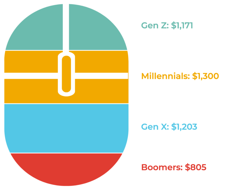 Millennials will drop more cash than any other generation, but will spend the lowest proportion (63%) online