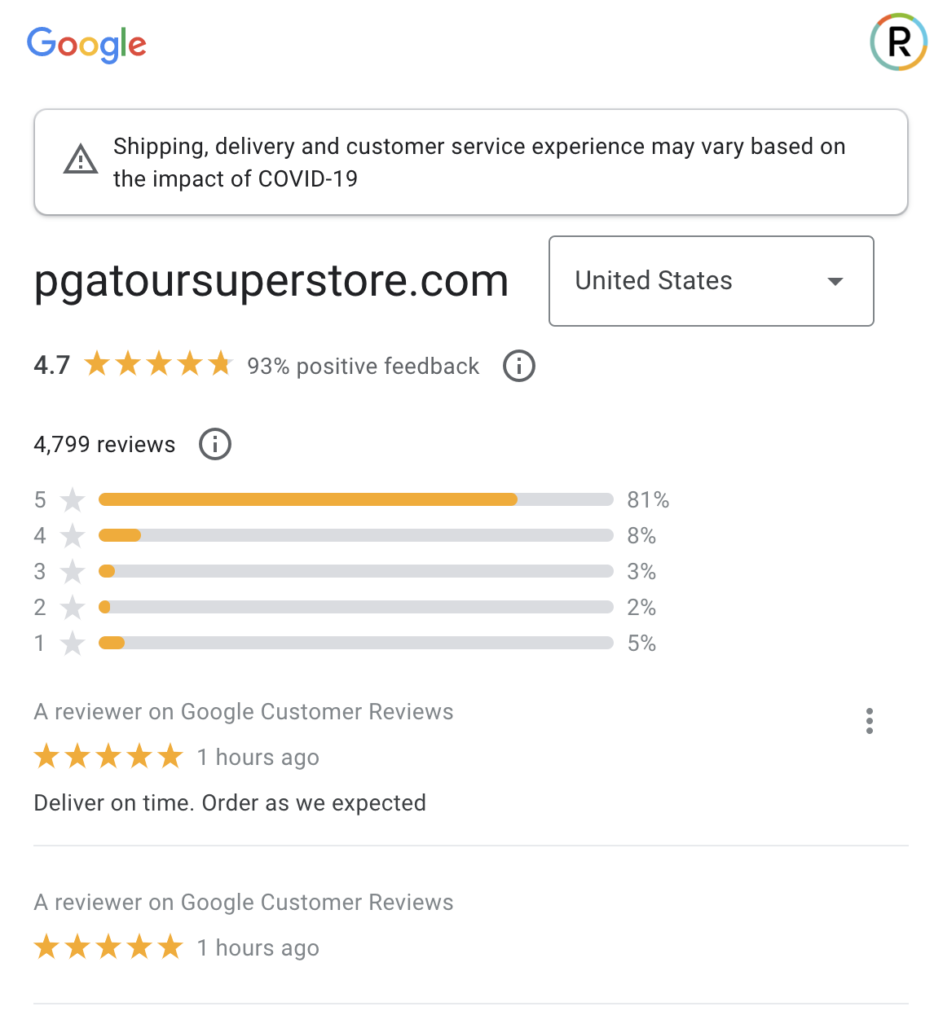 - For example, PGA Tour Superstore would be: https://www.google.com/shopping/ratings/account/lookup?q=https://www.pgatoursuperstore.com/