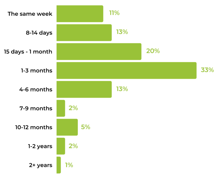However, most consumers prefer review content that is even fresher than that. Over three-quarters (77%) of consumers prefer to see reviews that are three months old or younger. Nearly half (44%) want to see reviews published within the last month, and 11% of consumers seek out reviews written that same week.