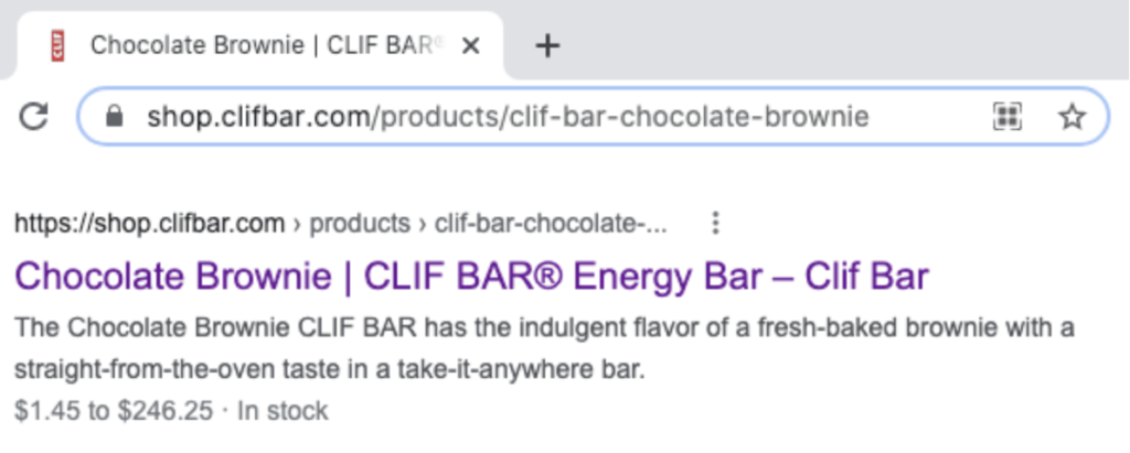 Depending on the size of your catalog, you may not need multiple levels to your URL structure. For example, Clif Bar has one level. Look at these simple, keyword-rich URLs: