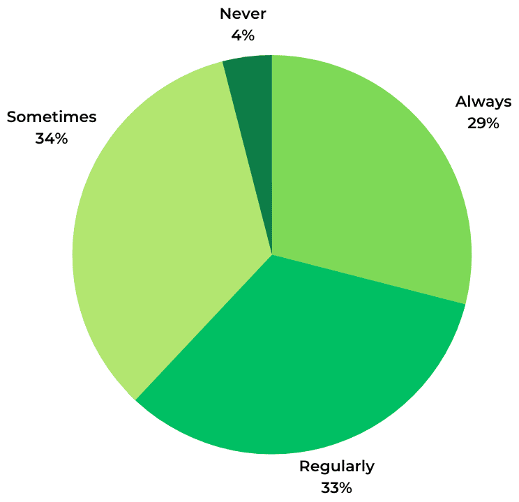 The vast majority – 96% – of consumers seek out photos and videos from other consumers when shopping for clothing online. 77% do so regularly or always.