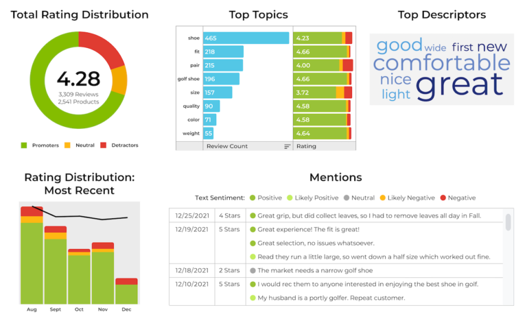 - Tools like product sentiment and review search analytics can help footwear brands glean more insights and value from their reviews.
