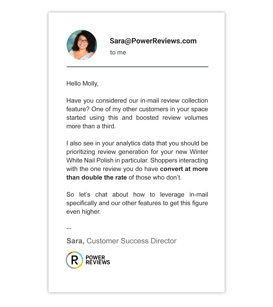 Our customer engagement framework spans way beyond UGC and the technology and services we offer. We invest the time to understand your overall goals and from there guide and counsel where PowerReviews fits best – whether you’re a multi-national business with massive conversion goals, or you’re a D2C brand seeking to establish a new UGC program.