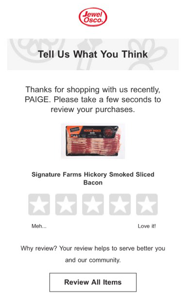 While most consumers are willing to write reviews, many won’t do so of their own accord. Instead, they need to be asked. The most effective way to do so is to send a post purchase email asking that the shopper submit reviews for recently purchased products.