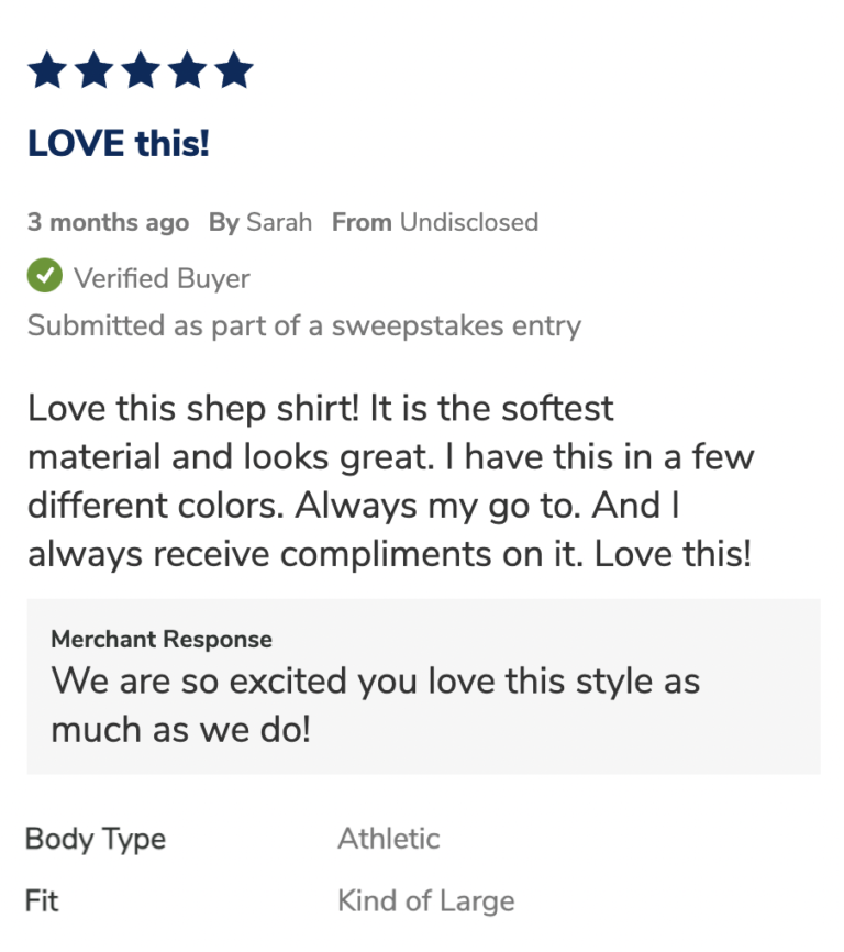 Yet, it’s still important to badge any reviews that are generated as the result of an incentive. Doing so is an important way to maintain transparency and preserve shoppers’ trust.