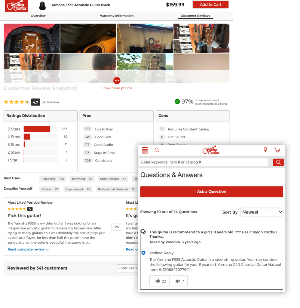 So be sure to add a Q&A section to your product pages that allows shoppers to browse questions that have already been asked, submit their own, and answer questions posed by fellow shoppers. A best practice is to display this content alongside your ratings and reviews so consumers can easily find all of the user-generated content they need to make informed purchase decisions.