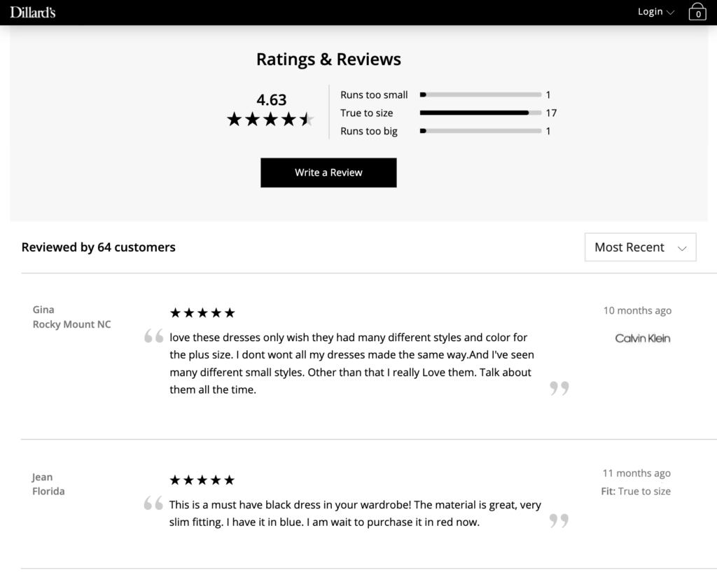 Dillard’s partnership with PowerReviews enables you to share authentic and compelling customer validation of your products to Dillards.com customers, including: